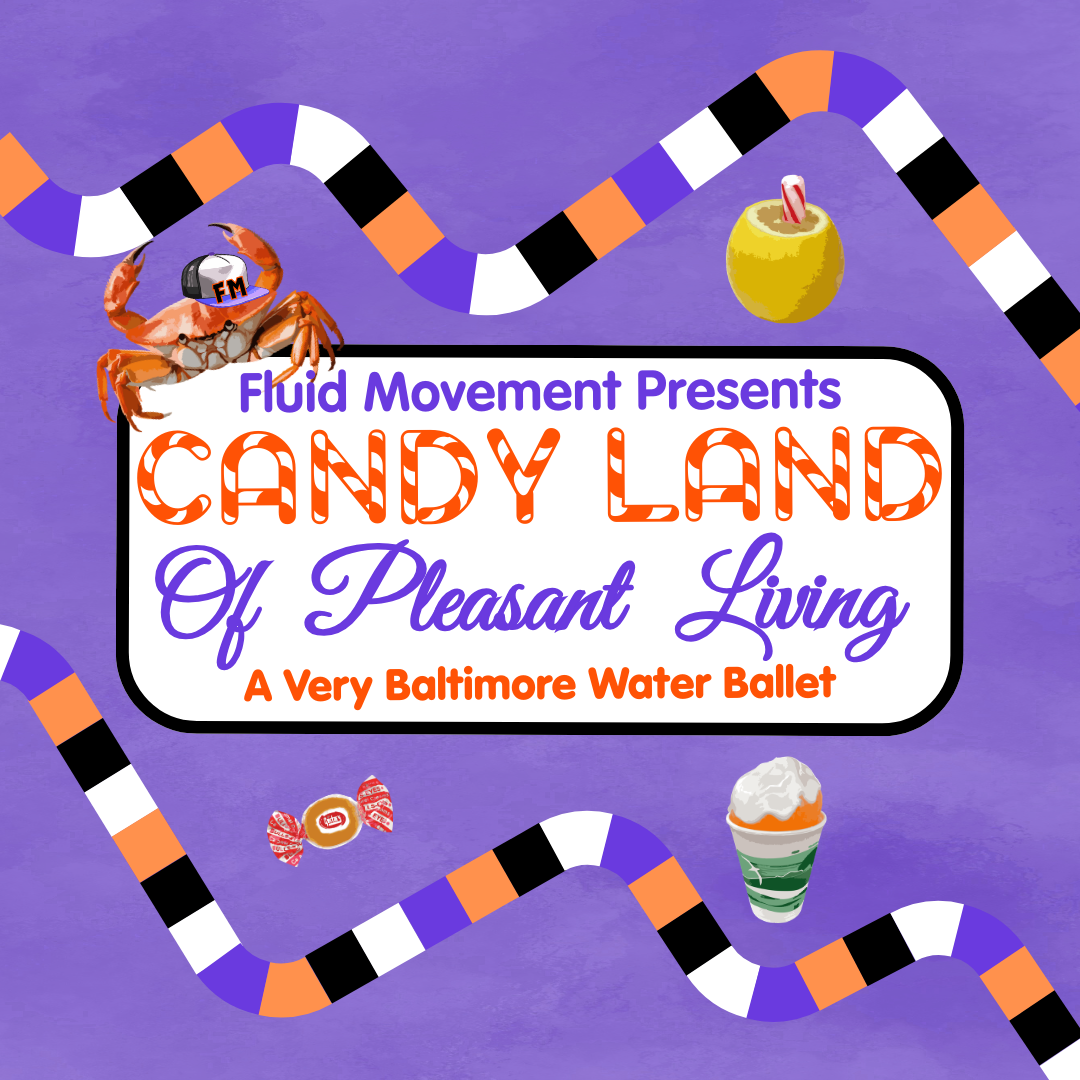 Fluid Movement is seeking land actors to bring the drama to our annual synchronized swimming ballet. This year’s show is Candy Land of Pleasant Living: A Very Baltimore Water Ballet (CLoPL). CLoPL is a journey into a familiar childhood game but with a (lemon) twist. Our cast will interact with iconic Charm City treats in a battle of sweet vs. savory. Come along as we clash with some very punny lines and see who prevails. Acting roles take place on dry land, so no swimming experience is necessary. However, since our performances are held outside, land actors are welcome to enjoy the pools during down time without mic packs!